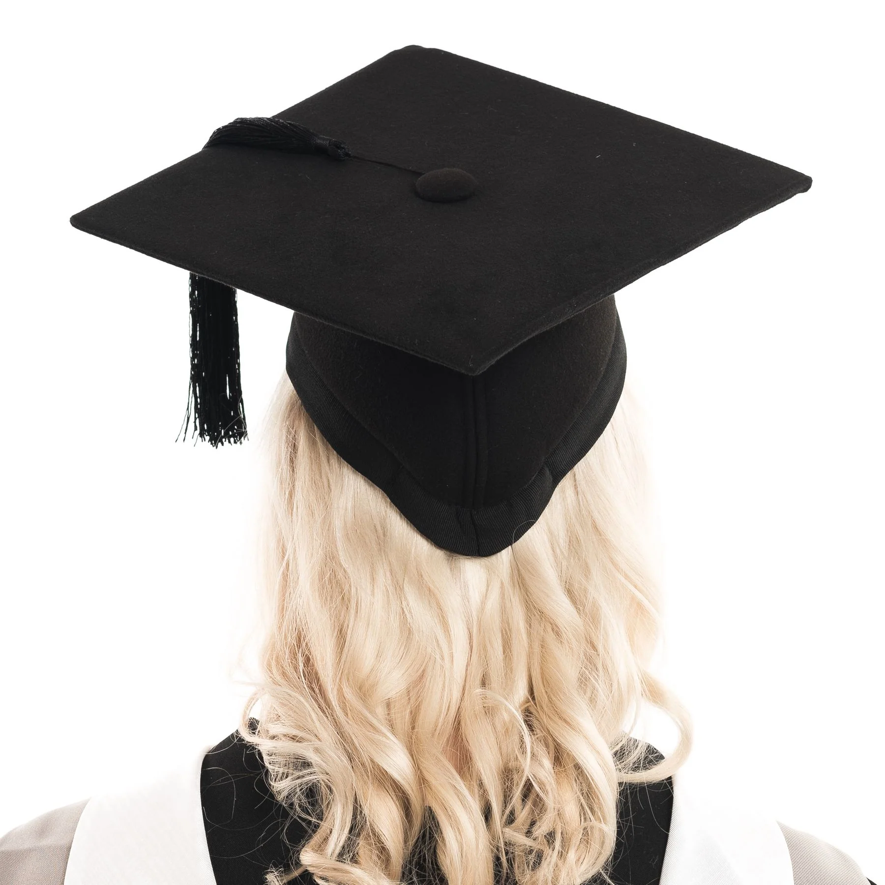 Finish your academic look with a Churchill Gowns mortarboard—a lightweight, British-made graduation cap in low-sheen fabric that photographs beautifully and stays comfortable from first procession to celebratory toss. Available in classic black. this fitted graduation hat pairs heritage style with modern, eco-conscious materials.